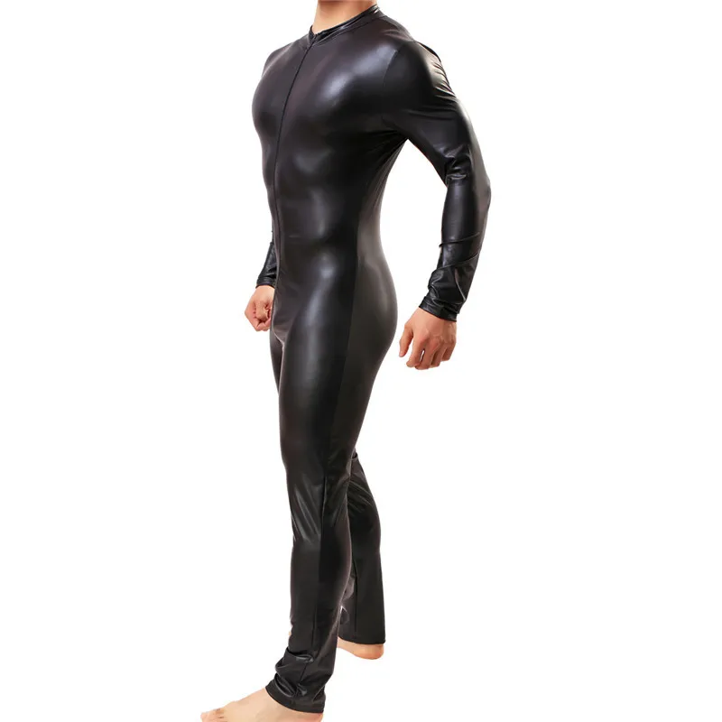 Related Product for Sexy Men's Bodsuits Zipper Long Sleeve Body Shaper Male Fitness One-Piece Underwear PU Leather Gay