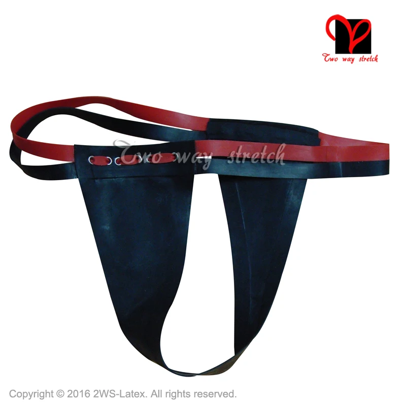 .image of Black Sexy Latex Tongs with red belt Rubber G Strings underwear Bottoms underpanty pants panty KZ-1
