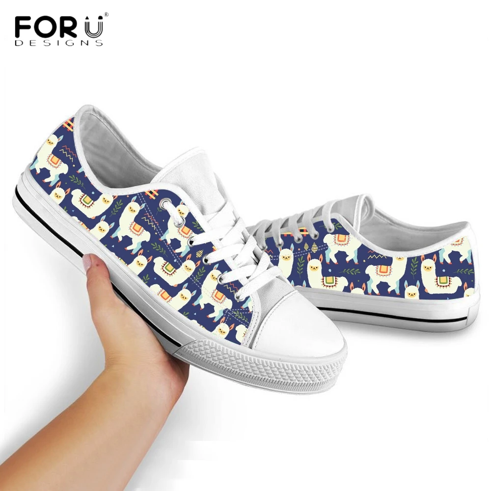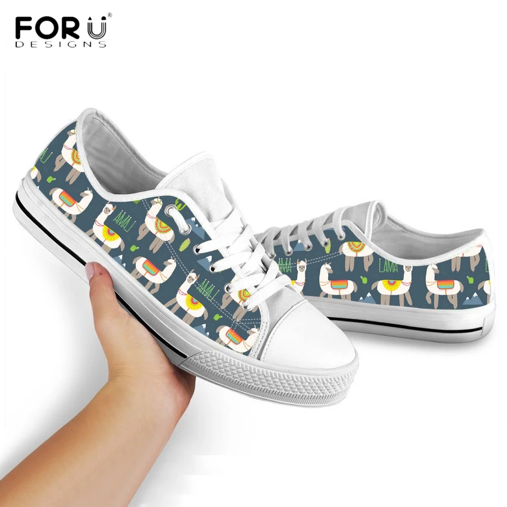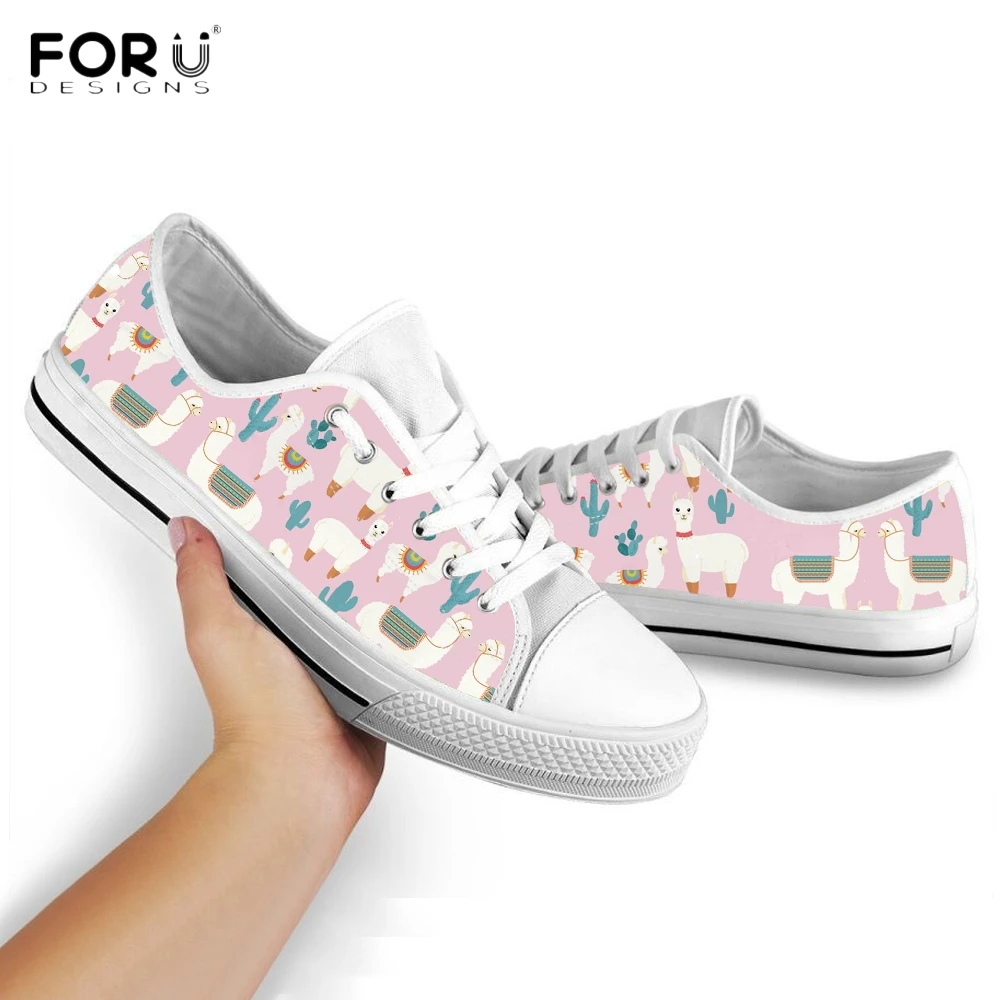 Cheap Price of FORUDESIGNS Funny Animal Alpaca/Llama Cactus Printed Women Designer Shoes Casual Autumn Low Top Can