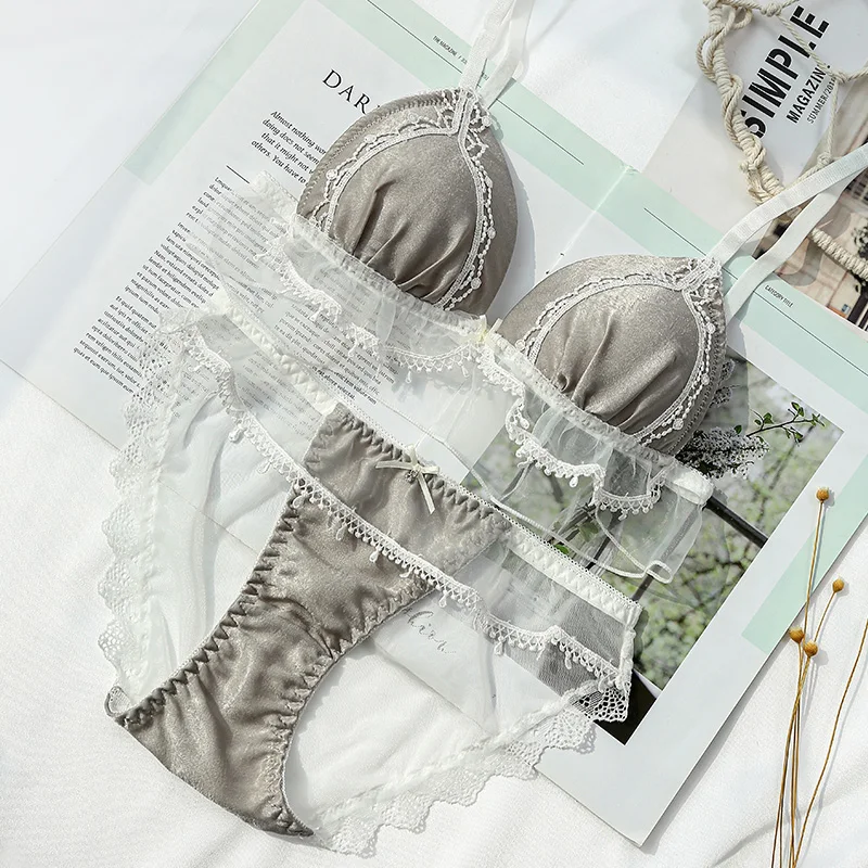 Related Product for Japanese Young Girl Bra & Panties Set Thin section Nets yarn Sexy Triangle cup underwear Cute Lace