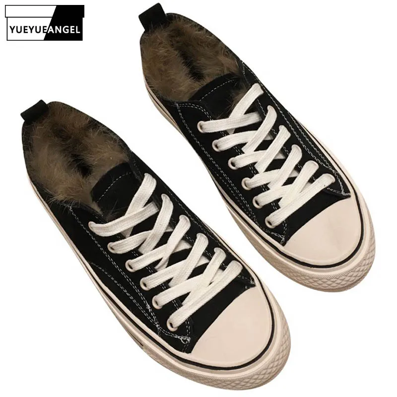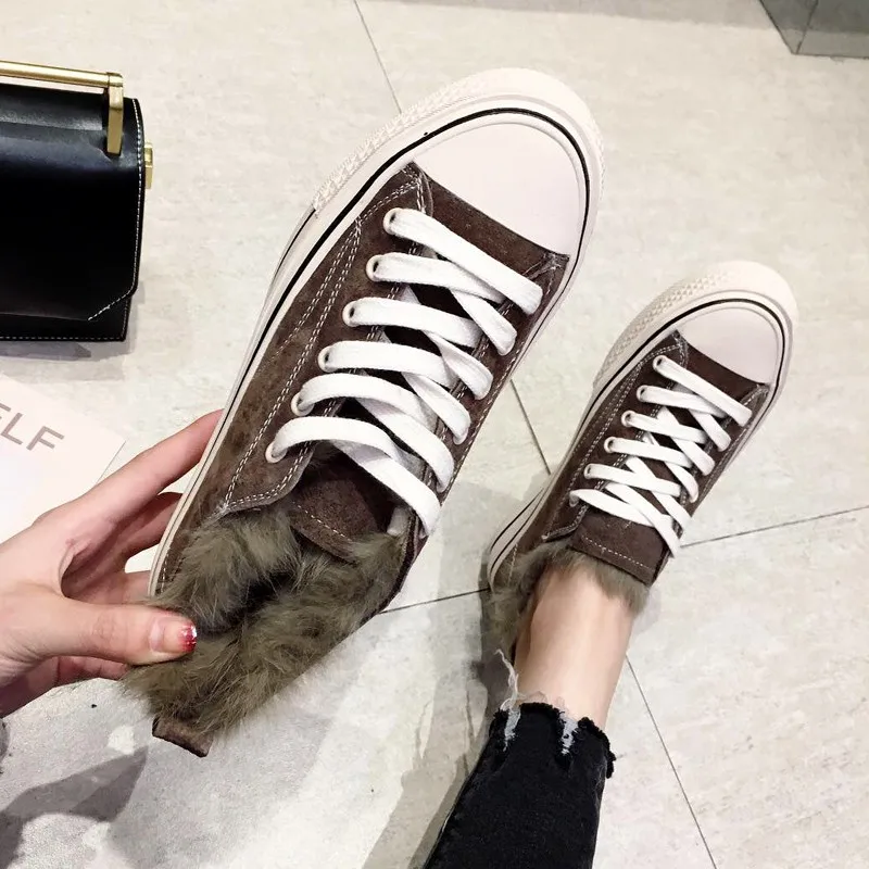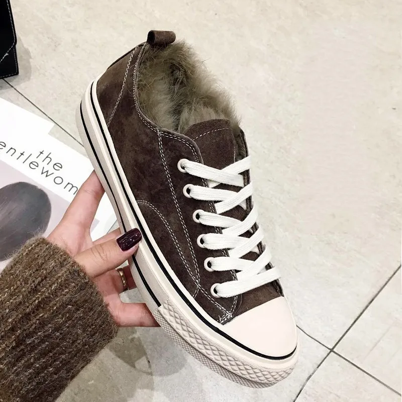 Limited Price for Women Flats Casual Shoe Winter Fleece Lining Warm Shoes Preppy Style Fur Canvas Shoes Streetwear Ch
